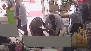 انقذ صاحب صيدلبة طفل كان برفقة أمه بمحافظة أكيازي التابعة لمدينة سكاريا شمال غرب تركيا