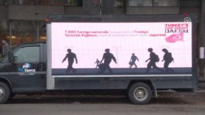 تجوب شاشات رقمية عملاقة شوارع العاصمة الامريكية واشنطن، لإطلاع المواطنين الامريكيين على الجهود التي بذلتها أنقرة في محاربة إرهابيي تنظيم “داعش”.