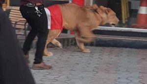 ونشر ناشطون صور ومقاطع فيديو للأسد رفقة مالكه على ما يبدو، فيما ذكر آخرون أن الحادثة وقعت الثلاثاء في محافظة بابل جنوب بغداد.