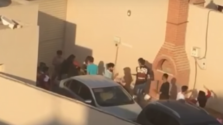 تداول ناشطون سعوديون في مواقع التواصل الاجتماعي مقطع فيديو يوثق مشاجرة جماعية في أحد الأحياء السكنية بالمملكة، فيما ألقت قوات الأمن القبض على شاب استأجر استراحة حصل فيها الحادث.