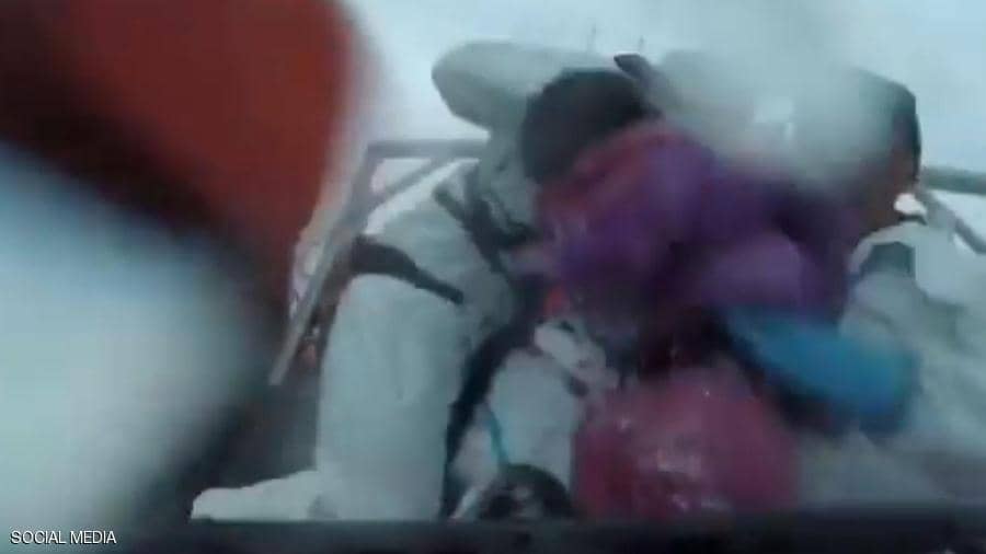 وأظهر فيديو عملية الإنقاذ، المهاجرين وهم يتم انتشالهم من البحر، بينما تحيطهم الأمواج الهائجة، إلى مركب كبير تابع للسلطات الإيطالية.