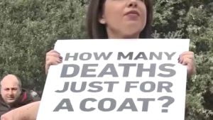 احتج عشرات النشطاء في مجال حقوق الإنسان في برشلونة وهم عراة تماما، تنديدا باستغلال دور الأزياء القاسي لجلود وفرو الحيوانات.