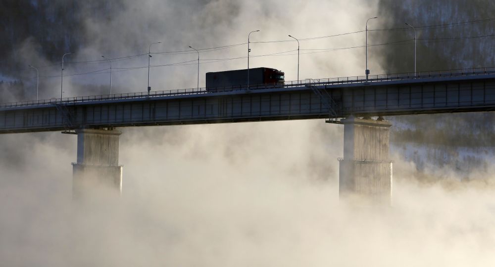 قام سائق شاحنة ثقيلة بتحطيم جسر فوق نهر ماكاروفكا في منطقة إيركوتسك الروسية، بسبب عدم التزامه بقواعد حظر حركة الشاحنات عليه.