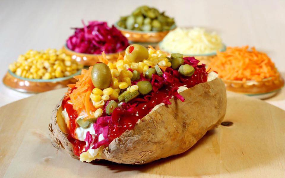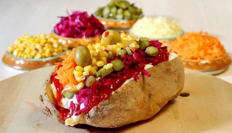 #كومبير: عبارة عن بطاطس مخبوزة مع الجبن والزبد السائح والزيتون والبازلاء والمخلل والذرة والمايونيز ومبشور الجزر والثومية…