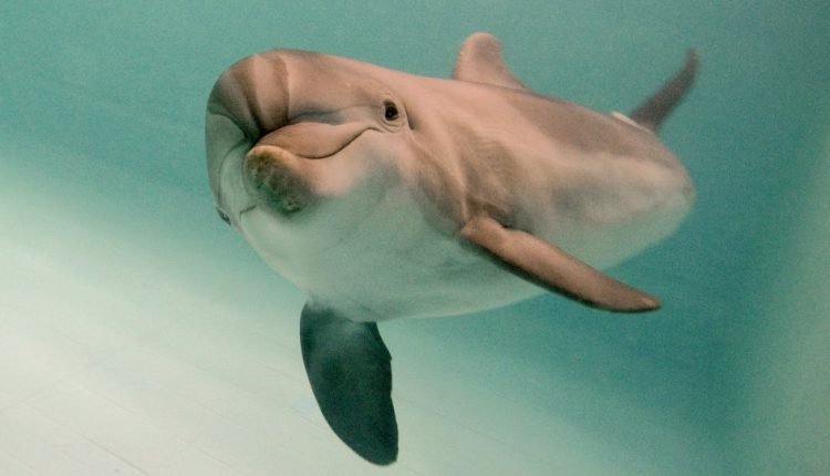 وتابع: “طول الزعنفة الصدرية للدولفين يبلغ 41 سم، الزعنفة الذيلية 60 سم، الزعنفة الظهرية 45 سم”، وأوضح أن عدد أسنانه تبلغ 44 سنا.
