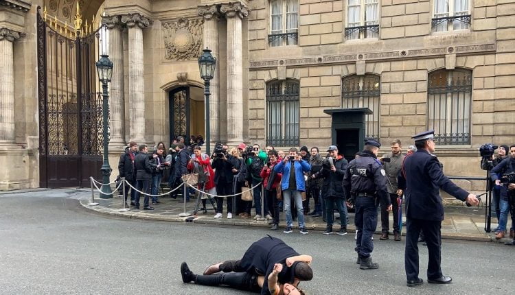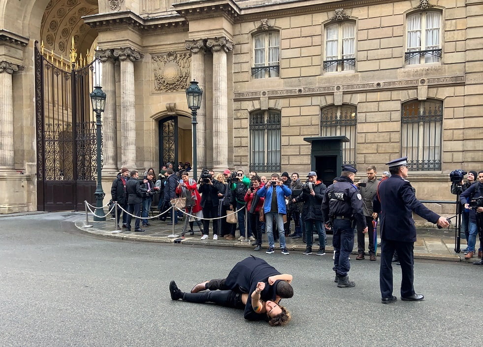 وبعد ثوان قليلة، ألقى ضباط الأمن في الشانزليزيه الناشطتين على الأسفلت، وقاموا بإبعادهما عن مدخل القصر.