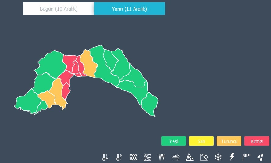 كما حذرت دائرة الأرصاد سكان مدينتي موغلا وأيدين من هطول أمطار غزيرة مع ساعات الليل واستمرارها حتى ساعات صباح يوم الخميس بحجم 50-100 ملم للمتر المربع على سواحل بودروم ومرمريس وداتشا وكوش أداسي وديديم.