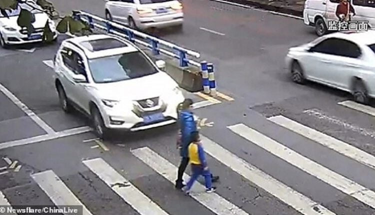 وأظهر فيديو متداول أما صينية ونجلها وهما يعبران طريقا مزدحما من المكان المخصص للمشاة، في منطقة دادوكو التابعة لمدينة تشونغ تشينغ الصينية، لكن إحدى السيارات، التي كانت تسير ببطئ، صدمتهما ليسقطا أرضا.