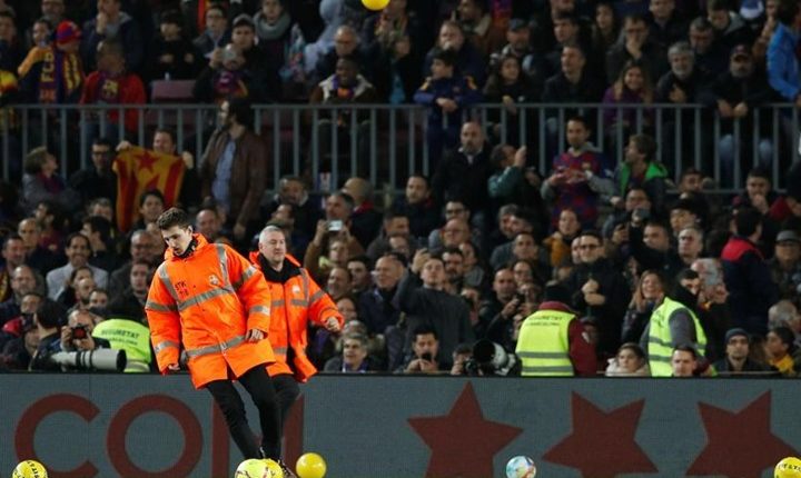 شهدت مباراة الكلاسيكو التي جمعت بين برشلونة وريال مدريد الإسبانيين، وانتهت بلا غالب ولا مغلوب، لحساب مؤجل الجولة العاشرة من منافسات “الليغا”، إلقاء مشجعي البلوغرانا كرات صفراء تسببت في إيقاف المواجهة.