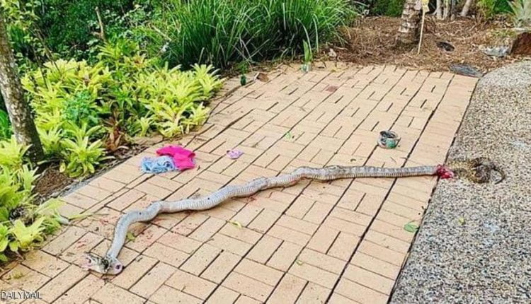 تعرض طفل يبلغ من العمر 4 سنوات لهجوم غادر من قبل ثعبان طوله 4 أمتار ونصف، حاول أن يجره بعيدا في فناء منزله الخلفي، قبل أن يتدخل والده بشجاعة.