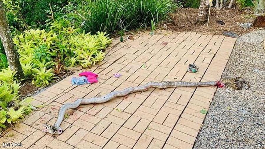 وتابع: “فجأة سمعت صراخا، وحين التفت فوجئت بثعبان ضخم يغرس أنيابه في ساق ابني ويجره بعيدا عن المنزل”.