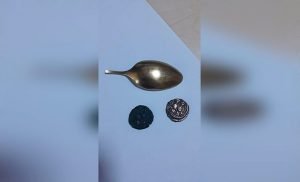وتم إلقاء القبض على أوزجان أ. سائق مركبة، بعد تفتيش سيارته والعثور على قطعتين معدنيتين تعودان للعصر الروماني.