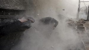 وتناقل سوريون صورة عنصر الدفاع المدني وهو يحمل المهندسة في محاولة لإسعافها. وعبير هي مهندسة التقانات الحيوية، وتعمل في مخبر يخدم المدنيين في المدينة.