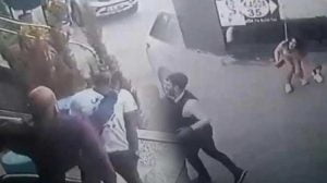 وتظهر مقاطع الفيديو تعرض واحد من المجموعة المكونة من ستة أشخاص إلى لكمة قوية من أحد رجال الأمن الخاص، بينما كانوا ينتظرون على السلم في الخارج.