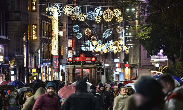 أنهت بلدية إسطنبول تحضيراتها لاستقبال رأس السنة 2020، من خلال تزيين ساحة “تقسييم” بألوان زاهية وإضاءات ملونة.