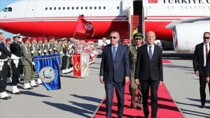 بعد وصوله إلى أنقرة قادماً من تونس، تعهد أردوغان بتقديم الدعم لحكومة طرابلس ضد حفتر، المدعوم من مختلف الدول الأوروبية والعربية.