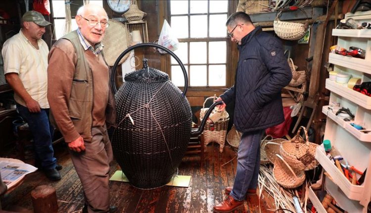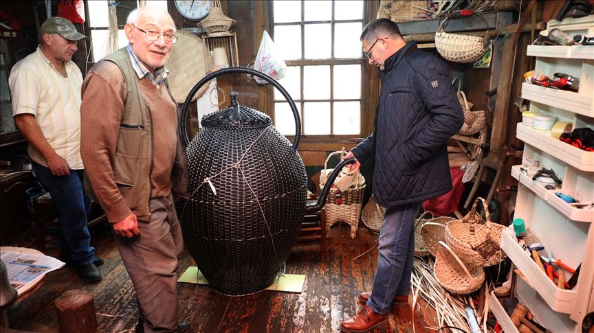 اضطر بكر هارونيك، صانع سلال، في قضاء” تشايلي”، بولاية ريزة، شمال شرقي البلاد، إلى خلع باب ورشته ليتمكن من إخراج إبريق شاي ضخم صنعه من الأسلاك البلاستيكية.