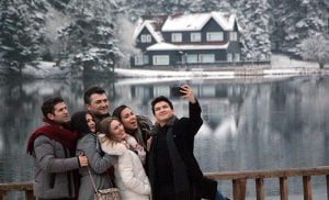وظهرت أجزاء من البحيرة، وفق ترجمة موقع “تركيا الآن”، وكأنها تجمدت بفعل برودة الهواء، كما انعكست ظلال الأشجار والأكواخ المحيطة بالبحيرة في الماء وكأنها لوحة فنية جميلة لا يمل الناظر إليها.