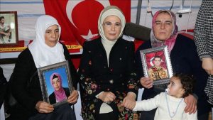 أجرت أمينة أردوغان عقيلة الرئيس التركي رجب طيب أردوغان، الثلاثاء، زيارة تضامنية للأمهات المعتصمات أمام مقر حزب “الشعوب الديمقراطي” في ولاية ديار بكر.