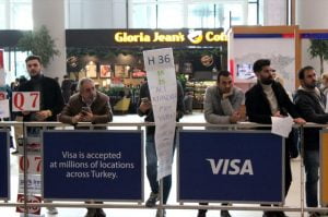 مواطنون ينتظرون ضيوفهم في مطار إسطنبول الجديد.