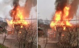 وأفاد شهود عيان، وفق ترجمة موقع “تركيا الآن”، بأن ألسنة اللهب انتشرت في أعمدة المنزل كالنار في الهشيم في ساعات الظهيرة، ولم يعرف بعد سبب اندلاع الشرر الأولي الذي تسبب بالحريق.