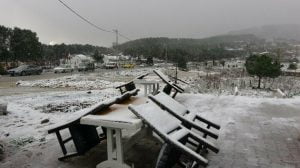 واكتست غابات ايدوس باللون الأبيض مع سقوط زخات الثلوج.