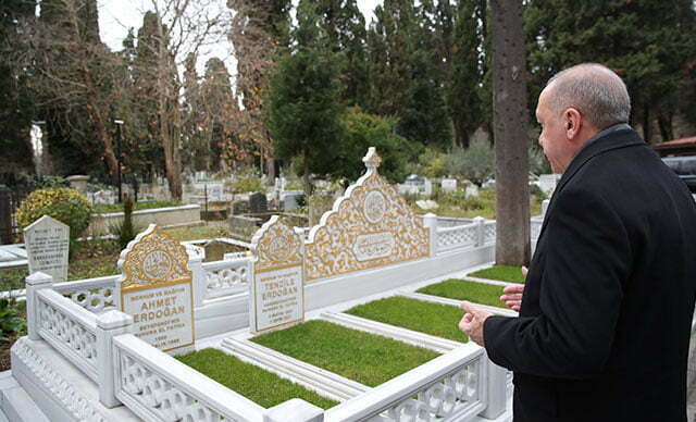 ووفقًا لما أوردته وكالة “دوغان” وما ترجمته “تركيا الآن” فإن الرئيس أدى صلاة الجمعة في مسجد علي باشا في منطقة “الفاتح” ومن ثم توجه للمقبرة لقراءة آيات قرانيه لوالديه.