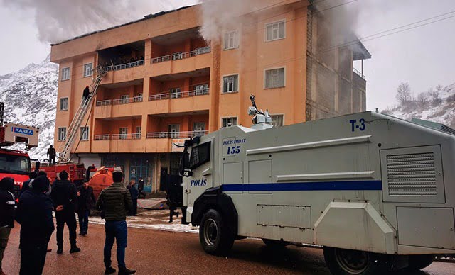 اندلع حريق في الطابق العلوي لمبنى بمقاطعة شمدينلي في هكاري شرقي تركيا، وتمكنت طواقم الإطفاء من السيطرة عليه في مدة وجيزة، بالتعاون مع مركبة التدخل في الأحداث الاجتماعية، والتي يرمز لها بـ(توما).
