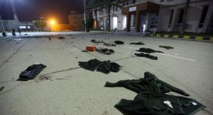 أشلاء وبقايا أمتعة الطلاب في المدرسة العسكرية بطرابلس