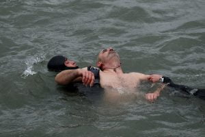 جرفت مياه الأمطار مواطنًا مسيحيًا اليوم الأحد، أثناء “معموديته” في منطقة “القرن الذهبي” المطل على بحر مرمرة في مدينة إسطنبول.