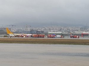 وخرجت الطائرة من نوع بوينج 737-800 التي كانت تقل ركابًا من الشارقة إلى اسطنبول، عن مسارها بعد هبوطها إلى أرض المطار، وفق ترجمة موقع تركيا الآن.
