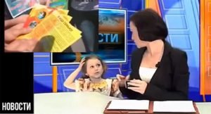 اقتحمت فتاة صغيرة بشكل مفاجئ “إستوديو” الأخبار في القناة الرسمية لروسيا.