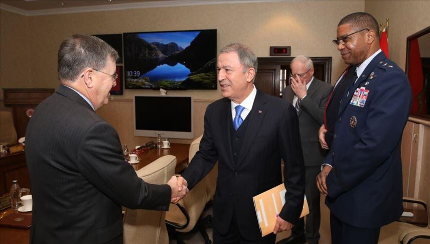 استقبل وزير الدفاع التركي خلوصي أكار، الجمعة، المبعوث الأمريكي الخاص إلى سوريا جيمس جيفري، والسفير الأمريكي بأنقرة ديفيد ساتيرفيلد.