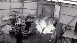 ووثقت عدسات المراقبة في مستودع العمل، موظفين اثنين أحدهما الشاب الأنغولي أثناء جلوسهما للتدفئة حول الموقد، وما أن سكب الشاب “الأنغولي” البنزين حتى اشتعل النيران به.