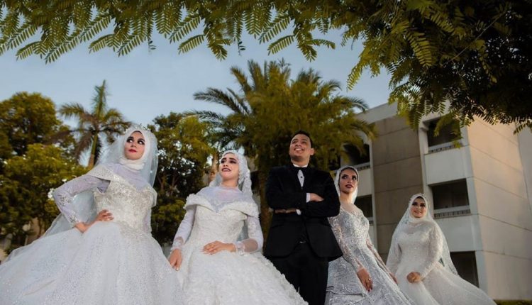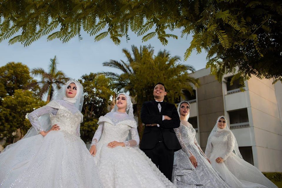 ذكرت مصادر محلية مصرية أن شابا 29 عاما ظهر في صور يرتدي بدلة زفاف برفقة 4 فتيات يرتدين فساتين الفرح، وسط حالة من الاستغراب والذهل لدى المتابعين.