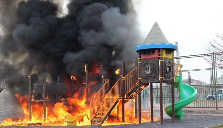 اندلعت النيران في حديقة للأطفال في منطقة “كوتشاسنان” بمدينة قيصري، مما أدى لاحتراق الألعاب بالكامل.
