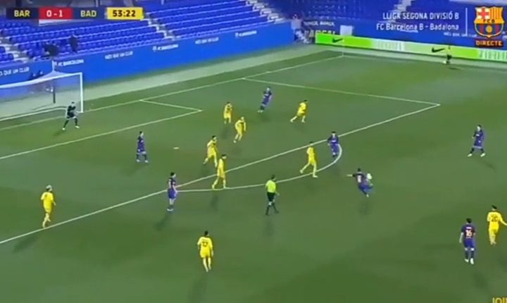 سجل اللاعب الموهوب لنادي برشلونة الإسباني لكرة القدم هدفا خرافيا، خلال مباراة الفريق الرديف للنادي الكتالوني أمام بادالونا ببطولة الدوري.