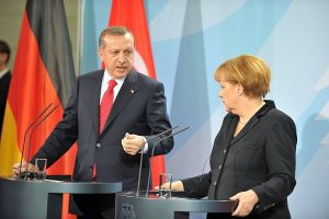 جانب من مؤتمر صحافي سابق للرئيس التركي والمستشارة الألمانية في برلين (أرشيف)