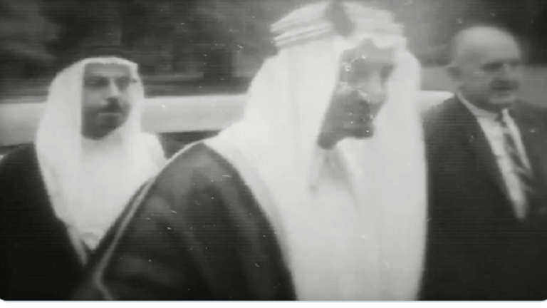نشرت السفارة الأمريكية في السعودية عبر صفحتها الخاصة على “تويتر”، مقطع فيديو نادرا يعود لعام 1945، ويظهر لقاء بين الملك السعودي عبد العزيز آل سعود والرئيس الأمريكي فرانكلين روزفلت.