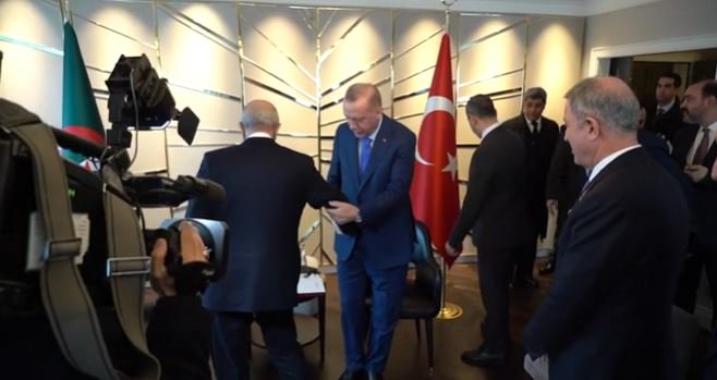 نشرت وسائل إعلام محلية وعربية، فيديو وصف بالطريف من لقاء الرئيسين التركي رجب طيب أردوغان، ونظيره الجزائري عبد المجيد تبون، على هامش مؤتمر برلين للسلام في ليبيا.