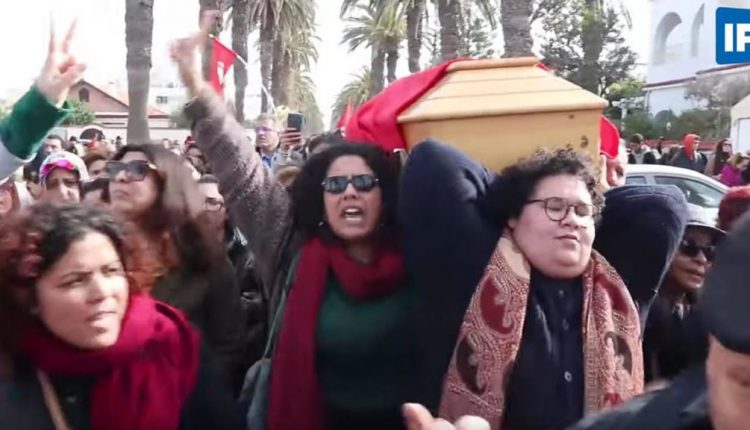 وغنت المطربة لبنى نعمان، أثناء مراسم دفن الناشطة التونسية، وسط تفاعل وتصفيق الحاضرين.