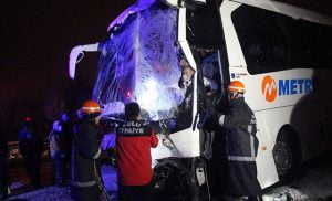 وقع حادث مروع اثر اصطدام 3حافلات وشاحنتين ومركبة تجارية في نفس الوقت على طريق (التم) في منطقة يومروكايا في مدينة بولو غربي تركيا حوالي .