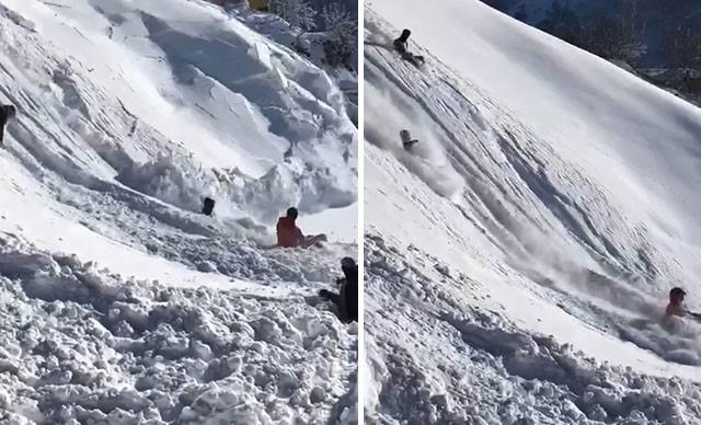 انهار جبل جليدي في قرية “كاكيلي دارا” بمنطقة “جانتش” في مقاطعة “بينغول” شرق تركيا، خلال تزلج مجموعة من المواطنين والأطفال.