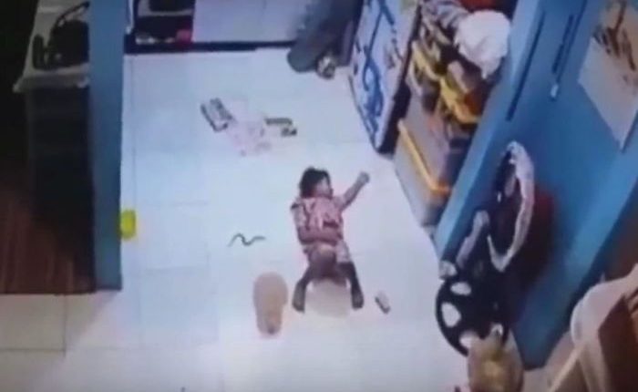 تداول رواد وسائل التواصل الاجتماعي فيديو يرصد لحظة دخول أفعى في سروال طفلة صغيرة وهي نائمة داخل منزلها الواقع في مدينة إندراماي الإندونسية.
