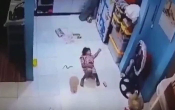 كما يظهر الفيديو وجود أفراد العائلة وبعض الحيوانات الأليفة بالقرب من الفتاة الصغيرة، ولكنهم جميعا لم يلحظوا الأفعى، إلى أن استيقظت الفتاة وأدركت أن شيئا ما يتحرك داخل سروالها.