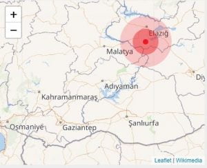 ضرب زلزال بقوة 4.4 درجات منطقة “سيرفجي” في مدينة “ألازيع / معمورة العزيز” شرقي تركيا.