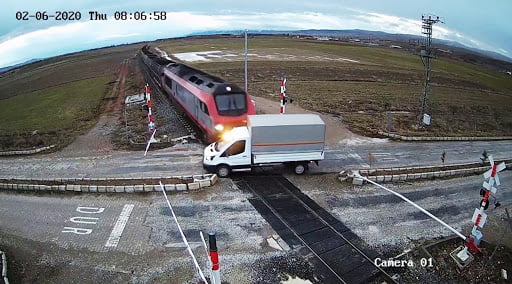 أظهرت لقطات صورتها كاميرات مراقبة قيام قطار بسحق شاحنة في إحدى المقاطعات وسط تركيا.