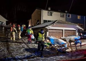 وسارعت طواقم الإطفاء والإنقاذ إلى مكان الحادث بعد إبلاغها من الجيران لإطفاء الحريف وإنقاد الضحايا .
