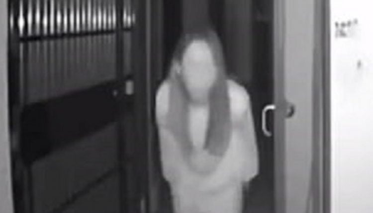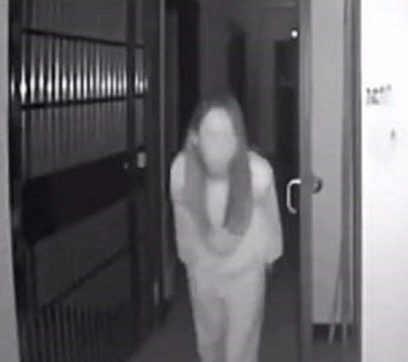 ويظهر في الفيديو السيدة وهي تتجول في ممر المجمع السكني وبوصولها لنهاية الممر، نظرت خلفها لتتأكد من عدم مشاهدة أي من الجيران لها؛ لتبدأ في البصق على مقابض الأبواب.