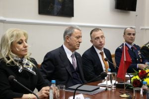 وزير الدفاع التركي خلوصي آكار خلال اجتماعات الناتو
